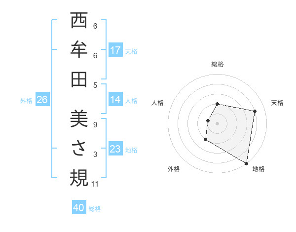 西牟田 美さ規さんの総格は40画の2点!