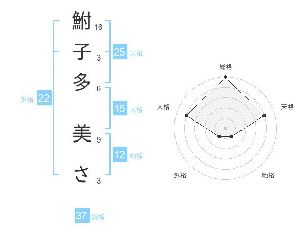 鮒子多 美ささんを姓名の画数から五運を鑑定