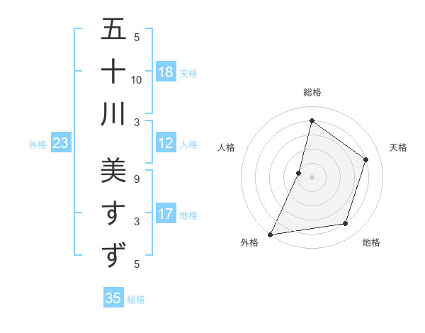 五十川 美すずさんの外格は23画の5点!