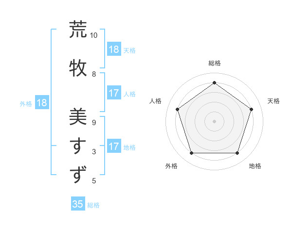 荒牧 美すずさんの総格は35画の4点!