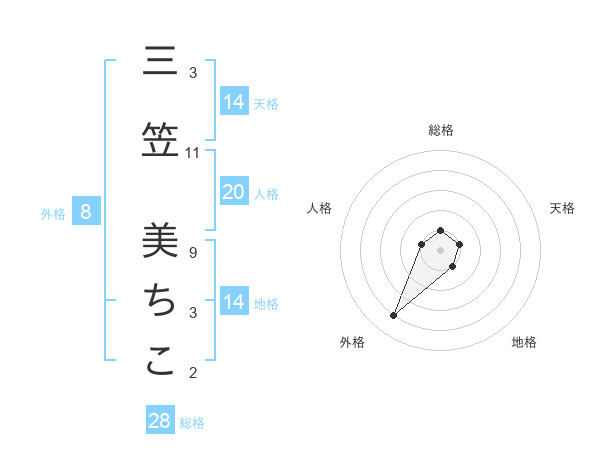 三笠 美ちこさんを姓名の画数から五運を鑑定