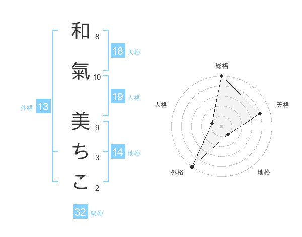 和氣 美ちこさんを姓名の画数から五運を鑑定