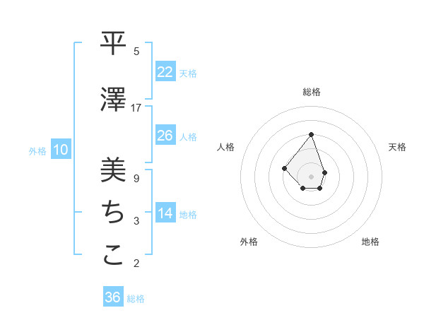 平澤 美ちこさんを姓名の画数から五運を鑑定