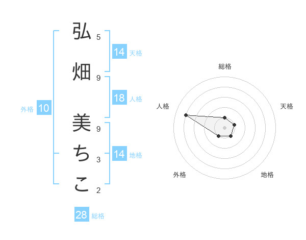 弘畑 美ちこさんを姓名の画数から五運を鑑定