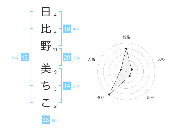 日比野 美ちこさんの総格は33画の4点!