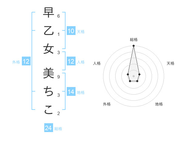 早乙女 美ちこさんを姓名の画数から五運を鑑定
