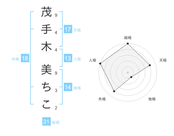 茂手木 美ちこさんを姓名の画数から五運を鑑定