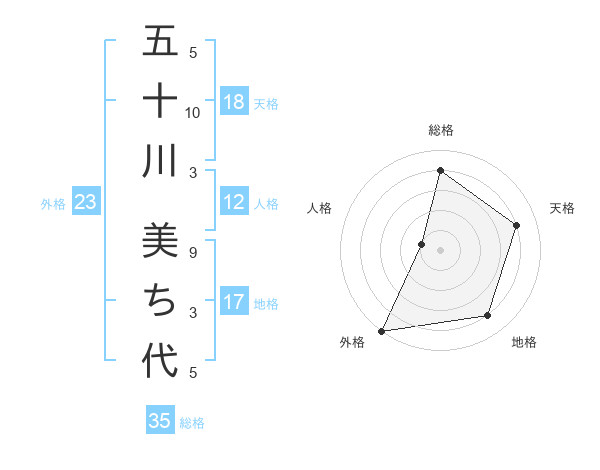 五十川 美ち代さんを姓名の画数から五運を鑑定
