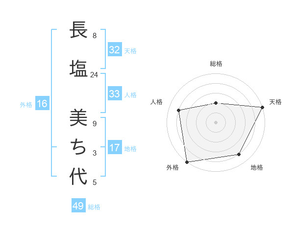長塩 美ち代さんの天格は32画の5点!
