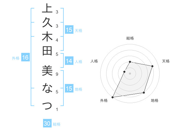 上久木田 美なつさんを姓名の画数から五運を鑑定