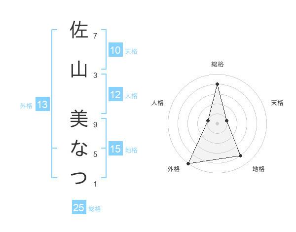 佐山 美なつさんの外格は13画の5点!