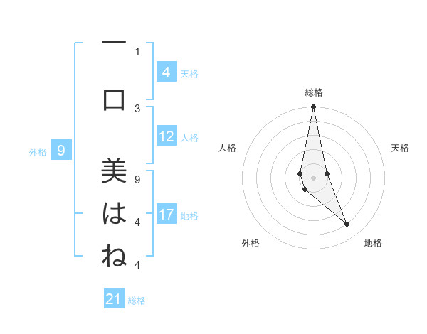一口 美はねさんの総格は21画の5点!