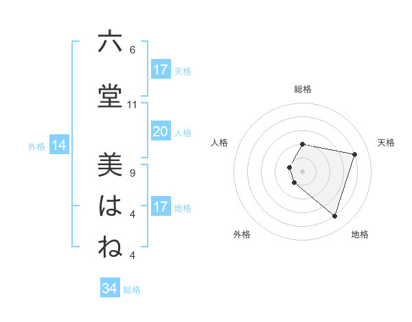六堂 美はねさんを姓名の画数から五運を鑑定