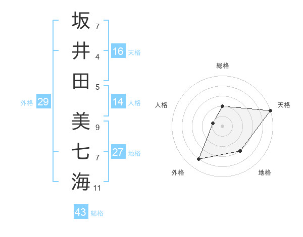 坂井田 美七海さんを姓名の画数から五運を鑑定