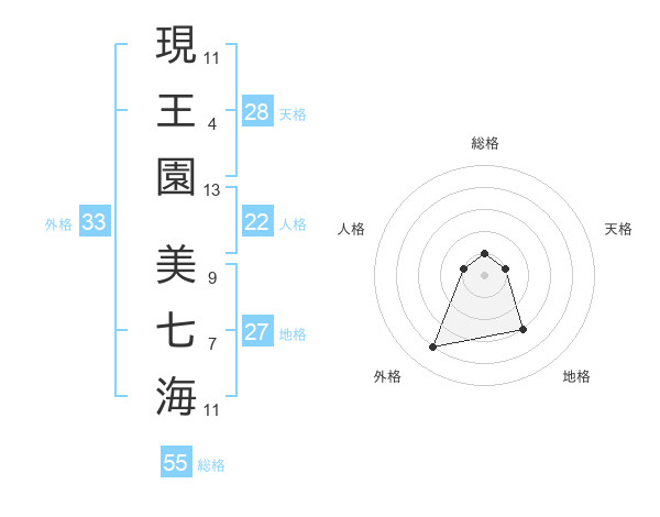 現王園 美七海さんを姓名の画数から五運を鑑定