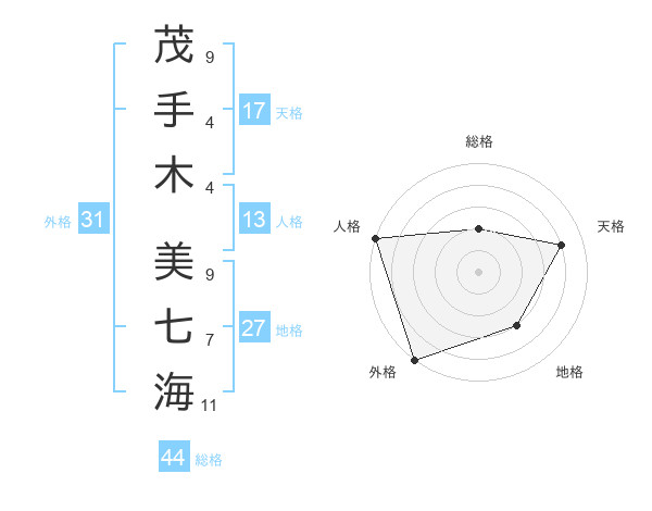 茂手木 美七海さんの天格は17画の4点!