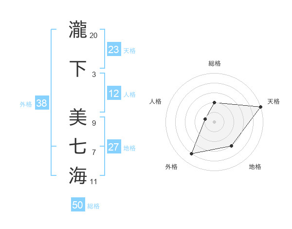 瀧下 美七海さんの総格は50画の2点!