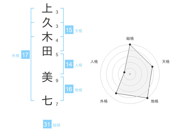 上久木田 美七さんを姓名の画数から五運を鑑定