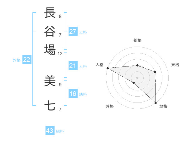 長谷場 美七さんの総格は43画の2点!
