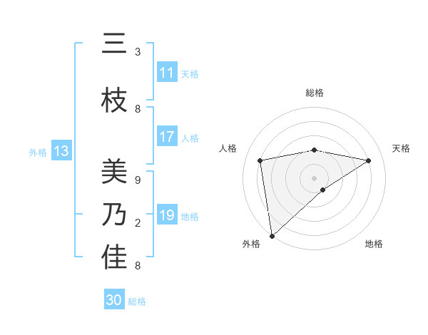 三枝 美乃佳さんの外格は13画の5点!