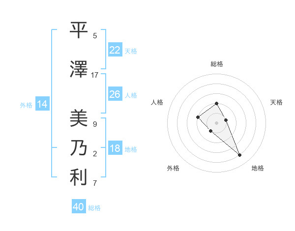 平澤 美乃利さんの天格は22画の1点!