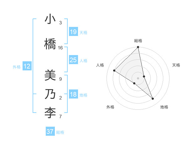 小橋 美乃李さんの総格は37画の5点