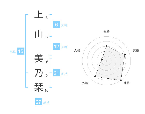 上山 美乃栞さんを姓名の画数から五運を鑑定
