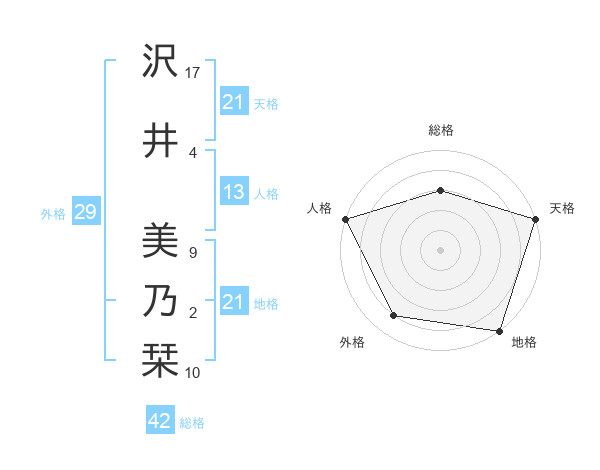 沢井 美乃栞さんの天格は21画の5点!