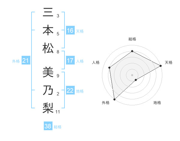 三本松 美乃梨さんを姓名の画数から五運を鑑定