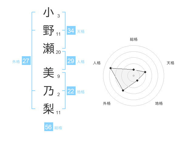 小野瀬 美乃梨さんの天格は34画の2点!