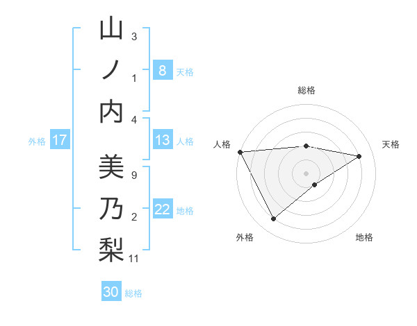 山ノ内 美乃梨さんを姓名の画数から五運を鑑定