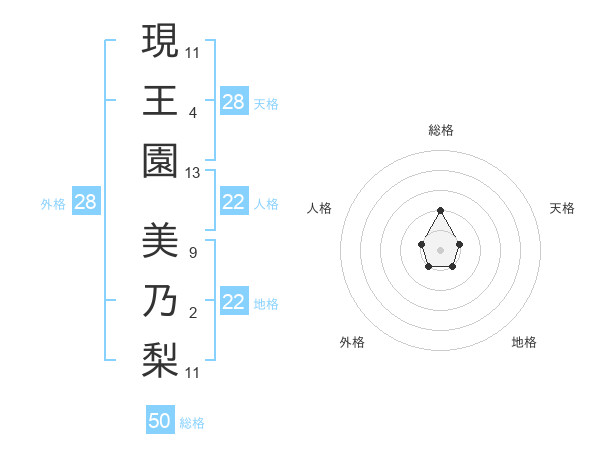 現王園 美乃梨さんを姓名の画数から五運を鑑定