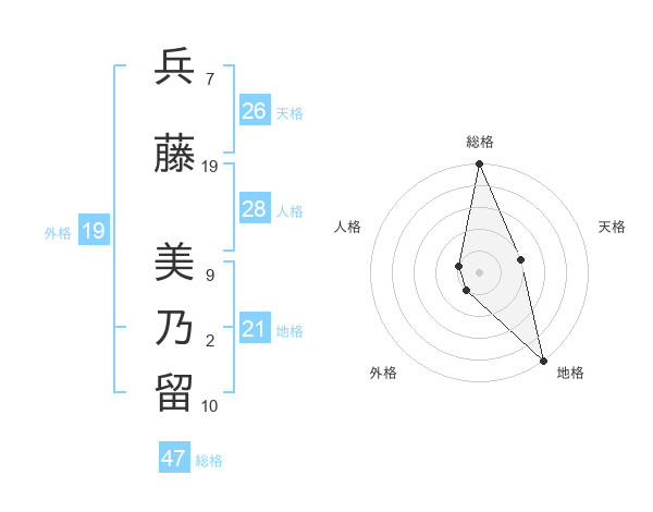 兵藤 美乃留さんを姓名の画数から五運を鑑定