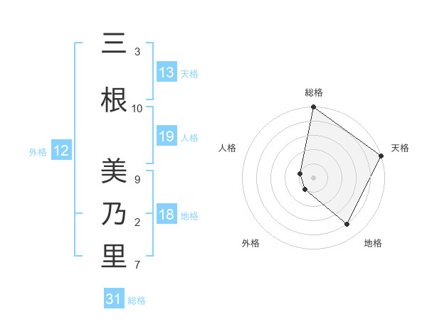 三根 美乃里さんを姓名の画数から五運を鑑定