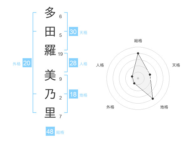 多田羅 美乃里さんを姓名の画数から五運を鑑定