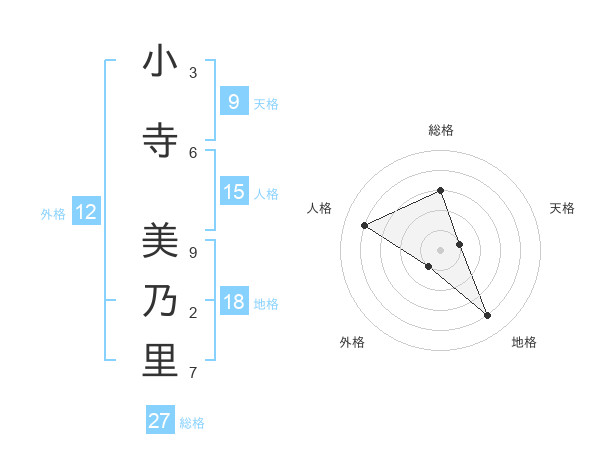 小寺 美乃里さんの総格は27画の3点!