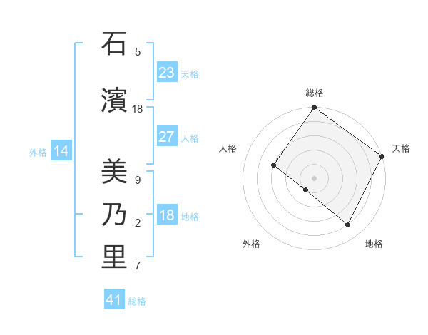 石濱 美乃里さんの総格は41画の5点!