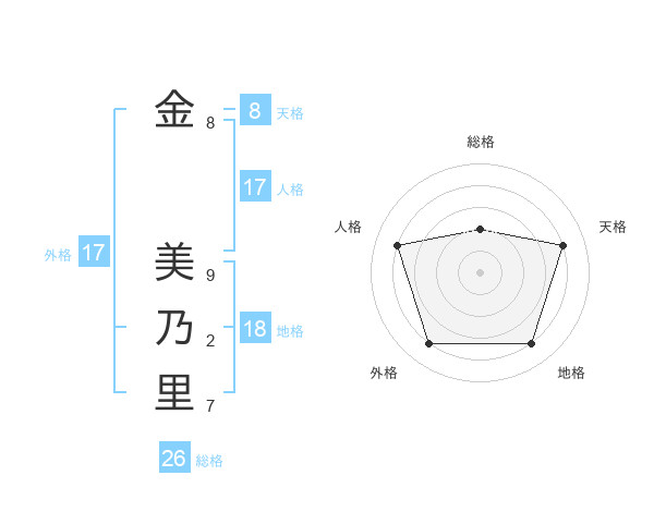 金 美乃里さんの総格は26画の2点!