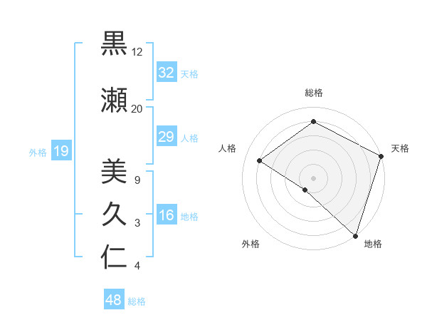 黒瀬 美久仁さんの天格は32画の5点!