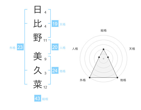 日比野 美久菜さんの外格は23画の5点!