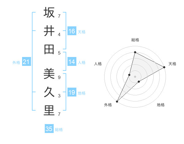 坂井田 美久里さんの総格は35画の4点!