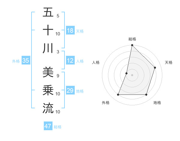 五十川 美乗流さんを姓名の画数から五運を鑑定