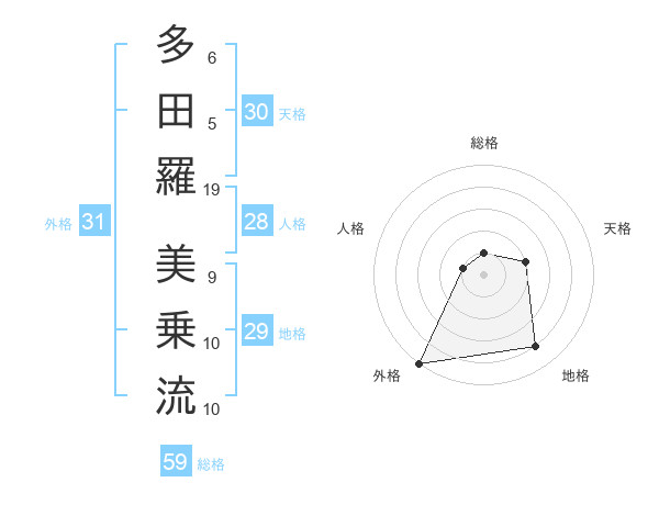 多田羅 美乗流さんの外格は31画の5点!