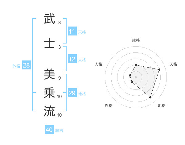 武士 美乗流さんの総格は40画の2点!