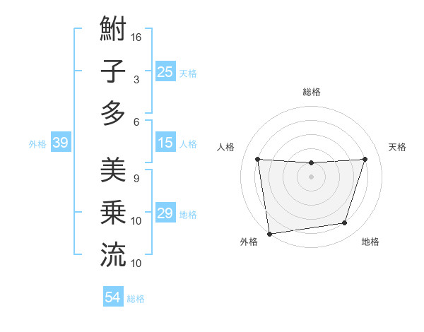 鮒子多 美乗流さんを姓名の画数から五運を鑑定