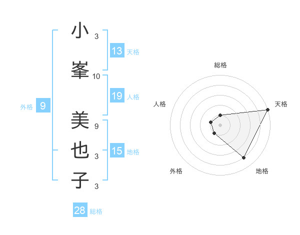 小峯 美也子さんを姓名の画数から五運を鑑定