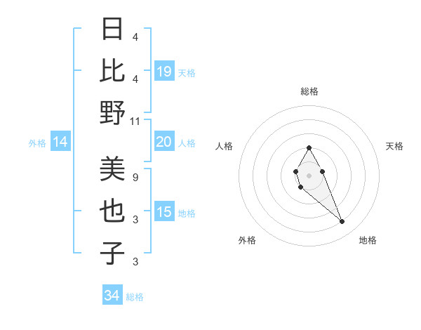 日比野 美也子さんを姓名の画数から五運を鑑定
