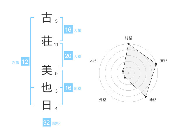 古荘 美也日さんを姓名の画数から五運を鑑定