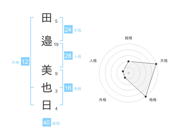 田邉 美也日さんの天格は24画の5点!