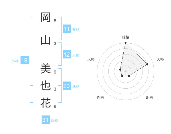 岡山 美也花さんの総格は31画の5点!